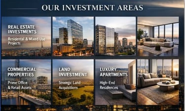 Our strategy is based on rigorous market analysis, active asset management, and a long-term vision. Strategic Focus Areas In-depth financial and real estate analysis Selection of prime locations Optimized risk management Value creation through development and restructuring Strong and sustainable partnerships.
